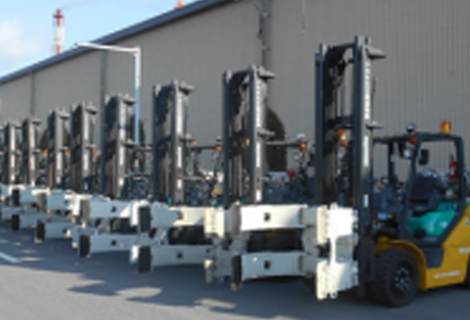 | 車 両 数 | 45台 4tクランプリフト 40台、3tフォークリフト 1台、スイーパー 1台、4t平ボディ車 1台、増トンウイング車 2台 |