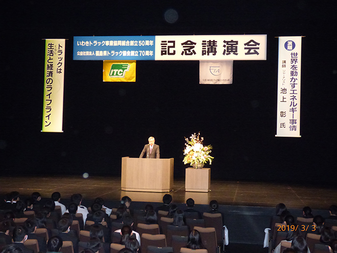 3月3日、当組合の創立50周年と福島県トラック協会創立70周年の記念事業として物流講演会を開きました。
